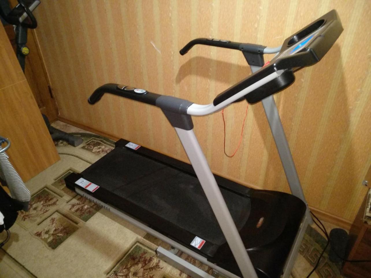 Slightly simpler model with a maximum speed of 13 km / h and the same slope (10%). The running surface is slightly smaller - 43x121 cm. The model includes 10 programs, 5 of which are aimed at health (training the tone, restoring cardiac activity), and 5 - at burning calories. All modes are quite easy to operate. This is a folding walkway that does not take up much space in the apartment. The instance has a capacity of 1.2 liters. with. and 895 watts.