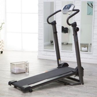 The magnetic analog has a magnetic brake that does not prevent the movement of the running belt, but slows it down a bit. As a result, the magnet provides a smoother movement of the track, as well as a more comfortable use of the simulator.