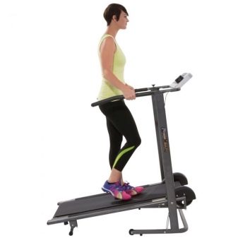 The folding exercise machine with 8 programs for run, the display and a pulsator, a support for a small bottle with water. The size of the canvas 34 by 88 cm, maximum load - 110 kg. Rollers facilitate transportation of the simulator. Tilt adjustment system and depreciation are absent.