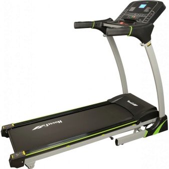 The simulator from the German brand is captivating with depreciation perfect for this type of devices and wide functionality. The canvas begins to move, as soon as the athlete takes a few steps on it, then the auto system is activated, a squeak is heard - and the smooth movement of the running belt begins. Its width - 33 cm, length - 118 cm. The display shows the standard parameters of training, runs on 2 batteries, the handles of the device have heart rate monitors. Compared with some other analogues, this model is noisier.