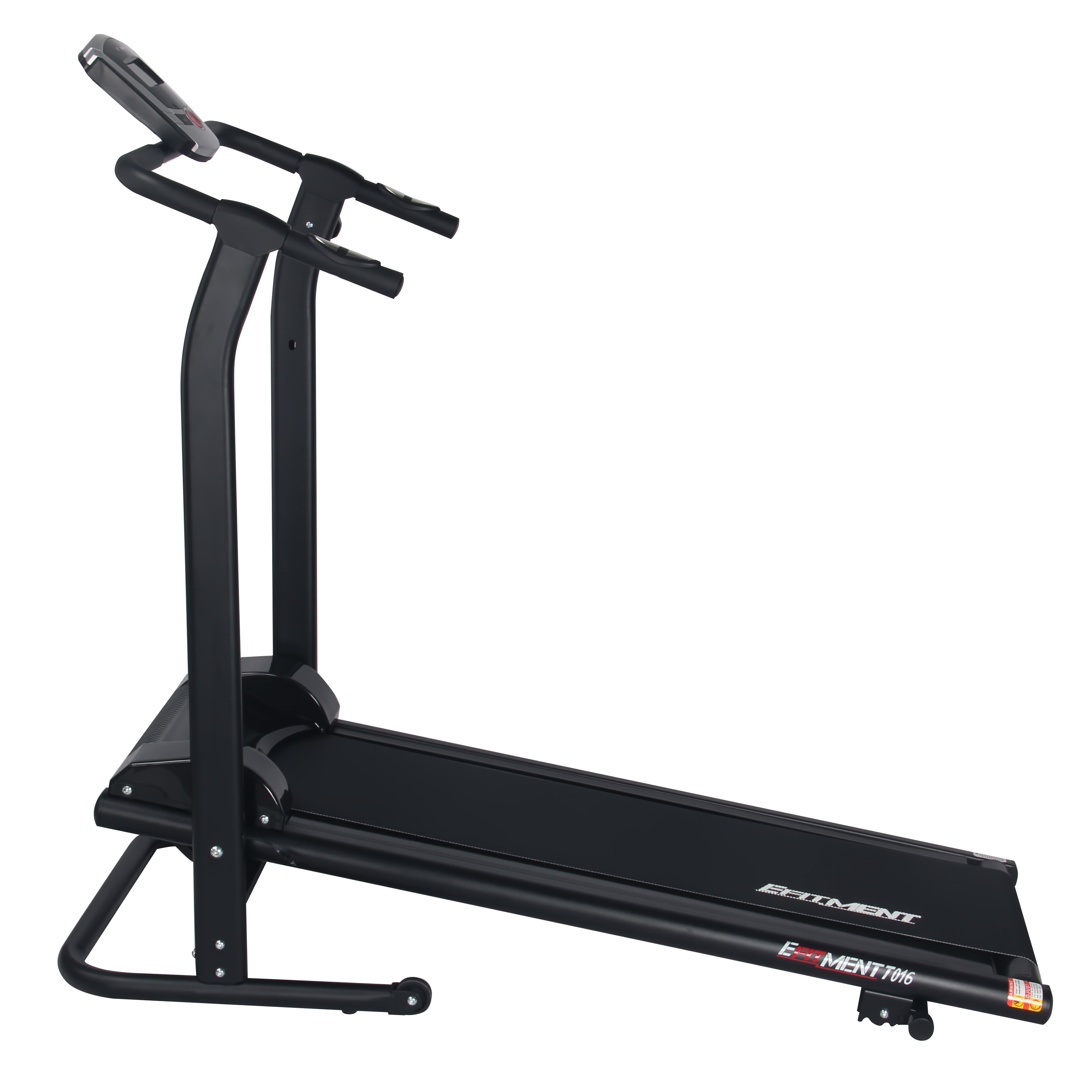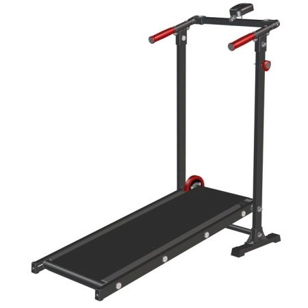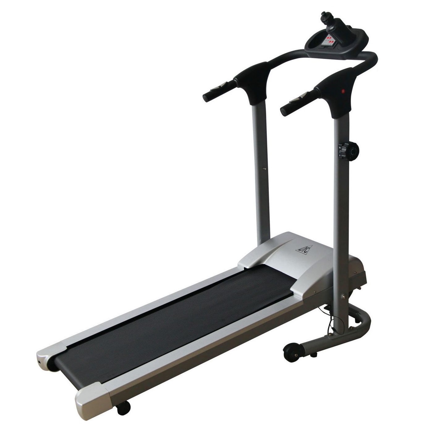 The manufacturer positions the device as a treadmill for home. This is confirmed by the compact dimensions (running belt - 36 by 92 cm), the ability to fold the simulator, the presence of transport wheels. There are 8 programs for running, the speed is not limited. The display shows the training time, speed and number of kilometers traveled, as well as the number of calories spent. True, the interface is English. And there is also a bottle holder. But the lining for uneven floors and depreciation system, this device can not boast.