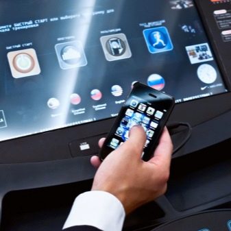 It is a control panel of the simulator. In particular, there is a monitor and control keys, which set the speed and degree of inclination of the running belt, and a training program is selected. The console, based on the structure of the track for running, may contain additional components: speakers, headphone jack, security key, connectors for connecting tablet computers or phones.