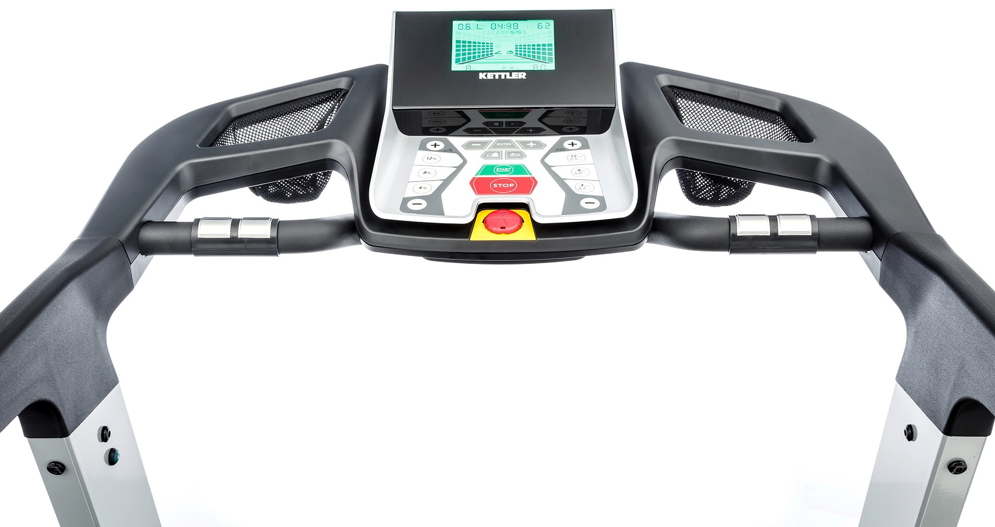 The user holds onto the handrails, using them to maintain balance during the workout. However, they may also have additional functionality: for example, it is convenient to switch between them the level of inclination and the speed of the track.