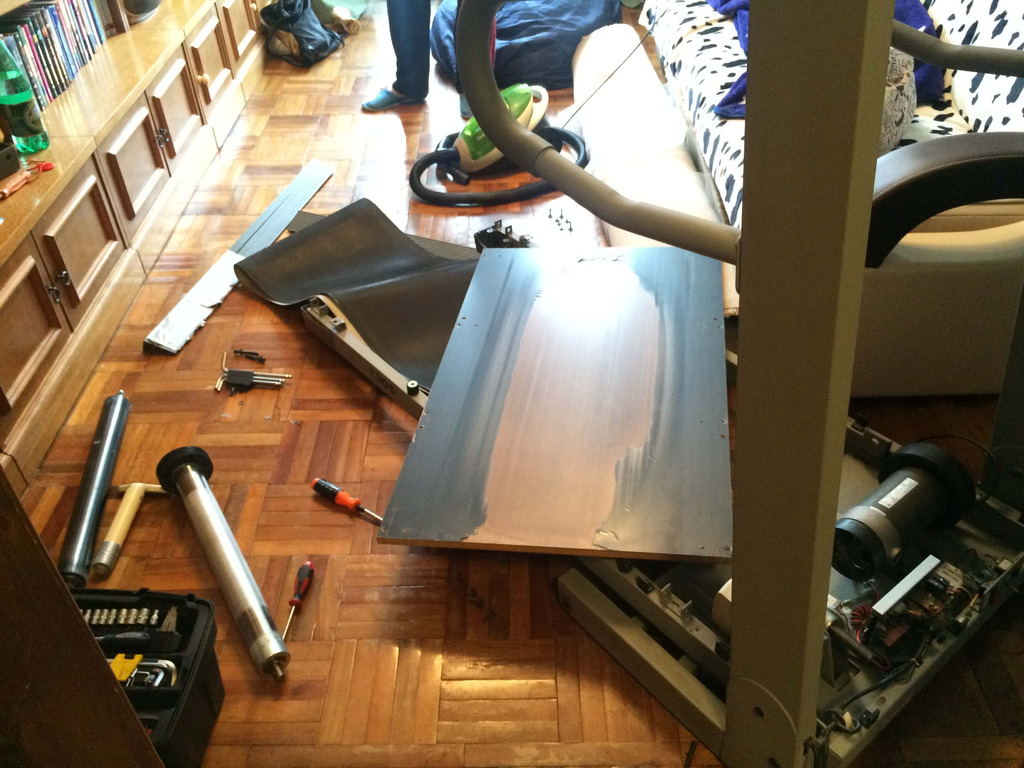 Conducting more complex repairs, such as repairing the power board electronics, console boards, power controller, restoring (firmware) software for the jogging track, and more, is not possible at home. It is better to use the services of the service center.