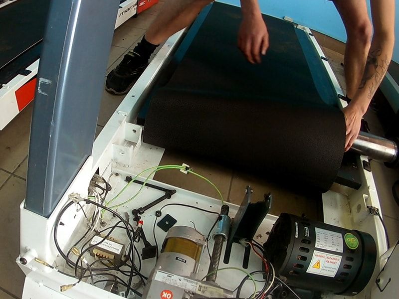 - The simulator is turned off during the session. Such problems are usually associated with worn brushes of the electric motor or over-stretched tape. If the brushes are loose on the collector contacts, they need to be changed. Next, check the belt tension: it is necessary to raise the left or right edge upwards with your hands, if the ribbon does not rise more than 2 cm, then it is too tight. With the usual stretch tape, it rises to 10-15 cm.