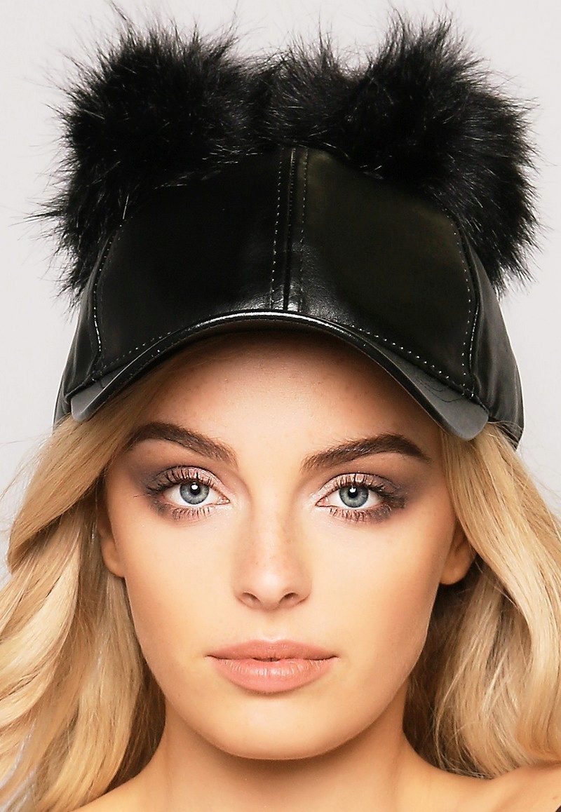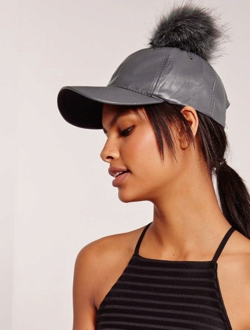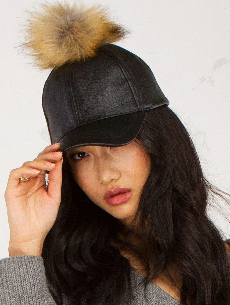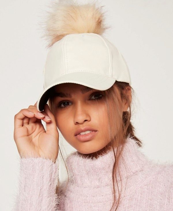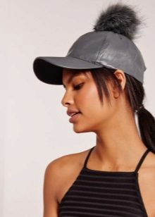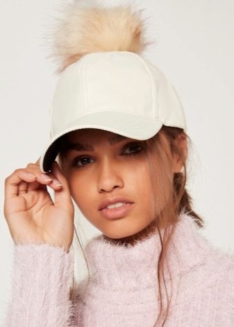 Jockey cap, decorated with a fur pompon, will be a trendy accessory in your wardrobe. Fur is also used in the edging, which gives femininity to models to create more relaxed classical images. Fur trim can be in the same skin tone, which is made of a baseball cap, and a contrasting color.