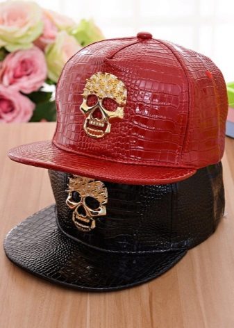 Cap with a straight peak is one of the most popular models among young people. The rapper caps are actively decorated with embroidery and metal fittings, they are stamped or printed onto the skin, using combinations with perforated leather on the visor. In a trend there are caps from crocodile or snakeskin.