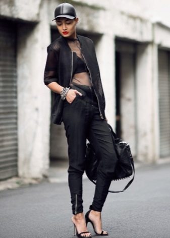 No less stylish will be a male look, consisting of a classic shirt of neutral tone (white, beige, dull yellow), worn over tight narrow trousers and besides a baseball cap, supplemented with a jacket or long leather coat.