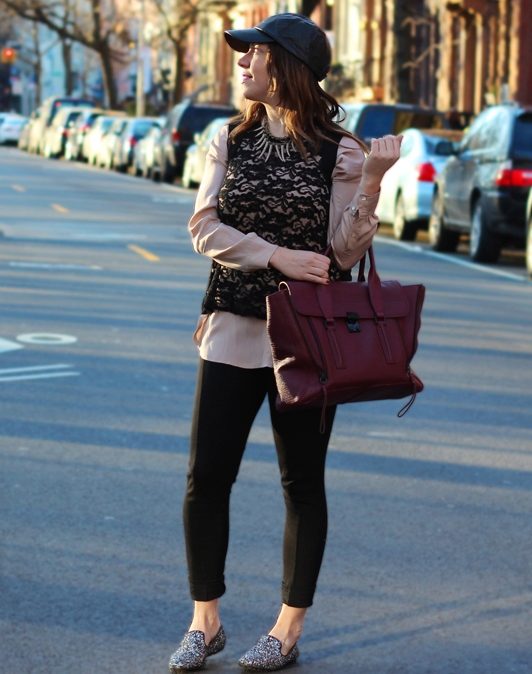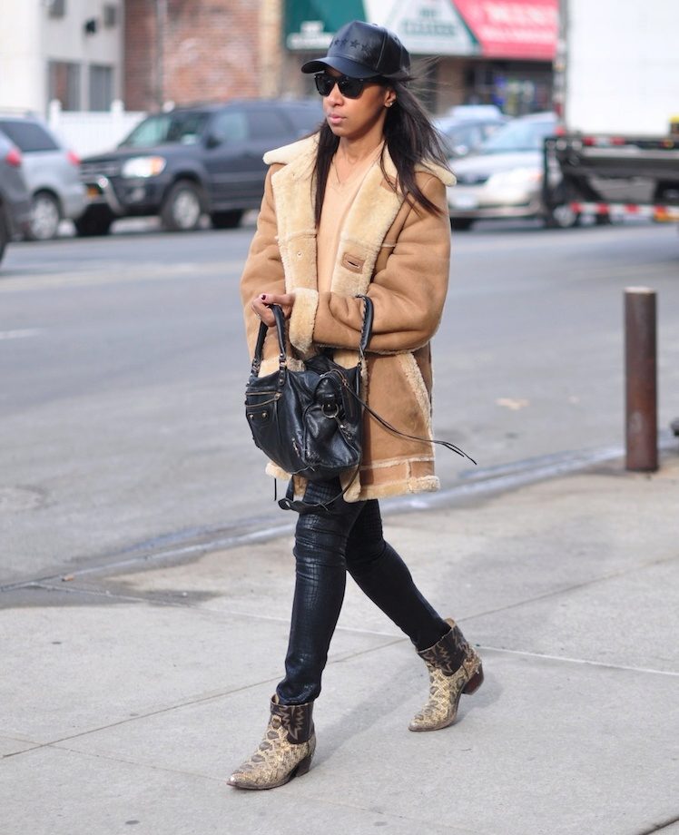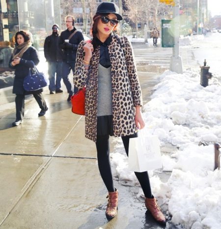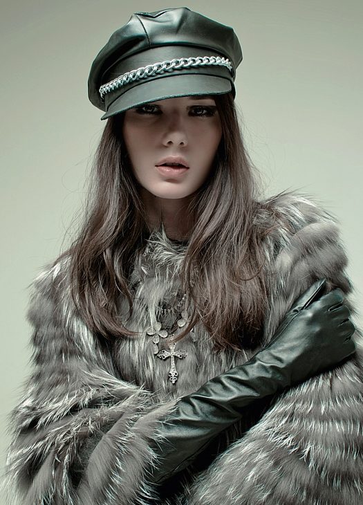 Wear a black leather baseball cap with a long, fitted coat to help you get a very interesting and stylish look. She also looks extremely good with coats of various furs from raccoon to rabbit.