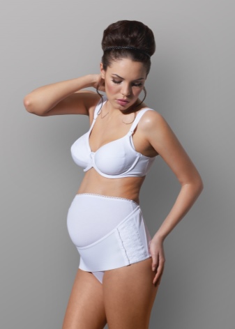 - Bandage for pregnant women in the form of a belt. Such a device should be worn on underwear. The corset is equipped with special fasteners with adhesive tape for easy fixing.