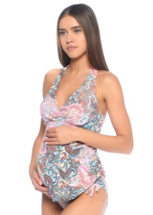 Emma Jane swimsuit is made from organic cotton. It has a delicate blue color with a large print of a light blue hue. There is an opportunity to unfasten straps, and use a swimsuit without them. The future mother will feel not only comfort from the quality of the fabric and colors, the assembly on the sides of the model will allow the growing tummy to blend in harmoniously with the overall image. The price of swimsuits for pregnant women manufacturer Emma Jane ranges from 1500 to 2700 rubles per unit.