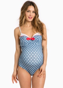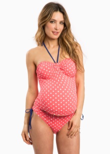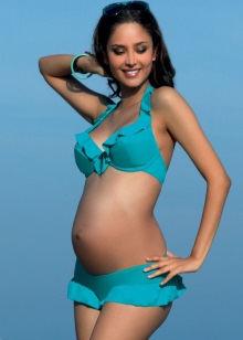- bikini - swimsuit with a bra that meets all the requirements of comfortable wear during pregnancy; panties - lowered in front and slightly inflated from behind, high, "crawling" on the tummy, grow with it;
