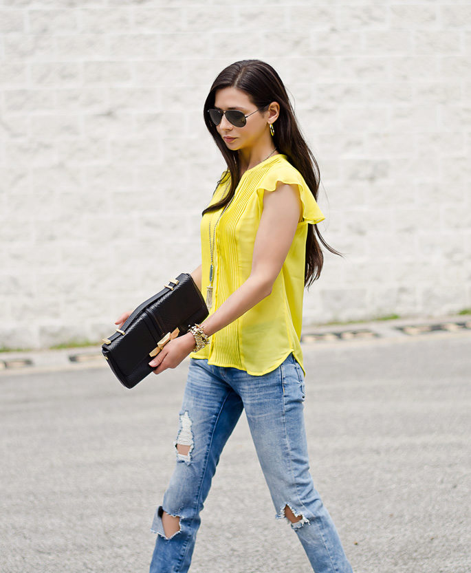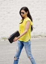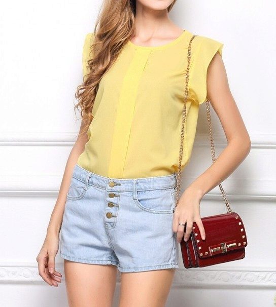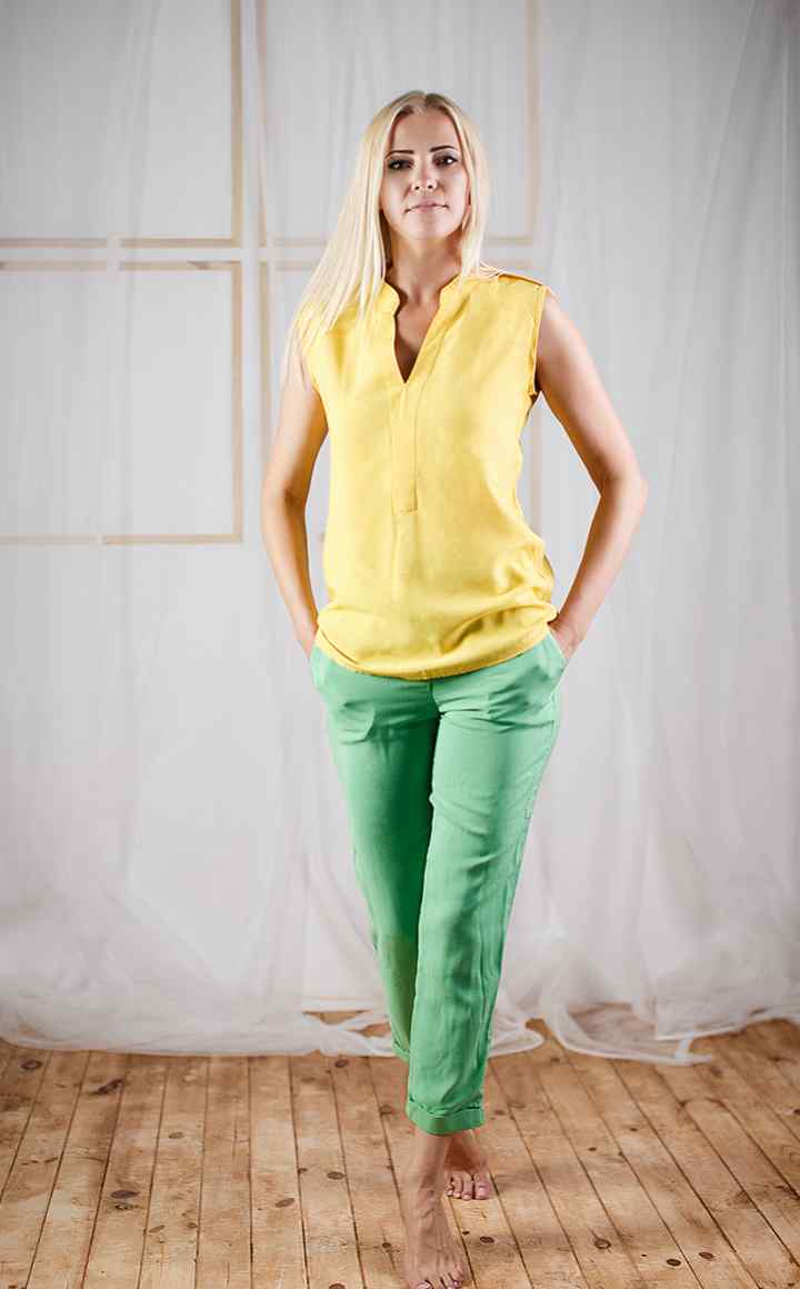 Yellow blouses attract attention and compel views, as this color causes joyful, positive emotions. The girl in the yellow sleeveless blouse will definitely not go unnoticed.