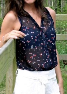 For those to whom plain-colored models of sleeveless blouses seem boring, we advise you to diversify your wardrobe with things decorated with a stylish print.