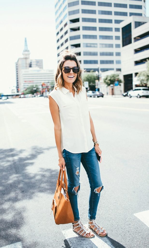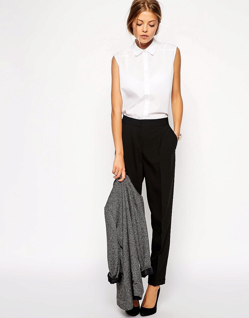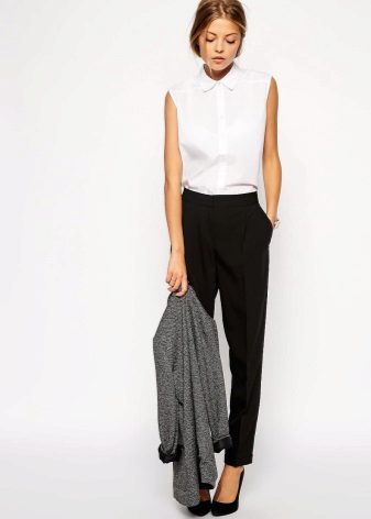 We bring to your attention a collection of fashionable bows with blouses without sleeves. Below are the most successful and vivid examples of how to properly combine such blouses with things in different styles.