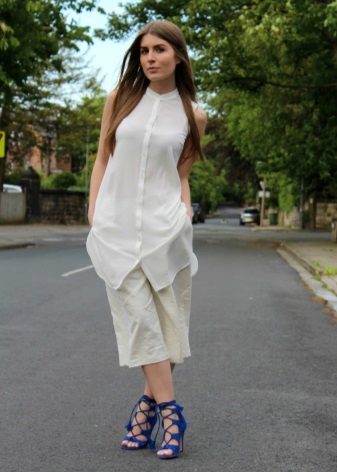 Shorts, leggings, denim overalls, summer bloomers, skirt-pants - not a complete list of things with which modern fashionable women have learned to combine a sleeveless blouse.