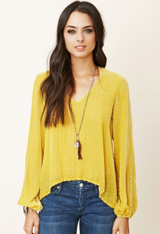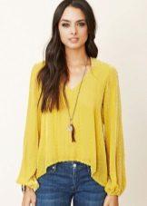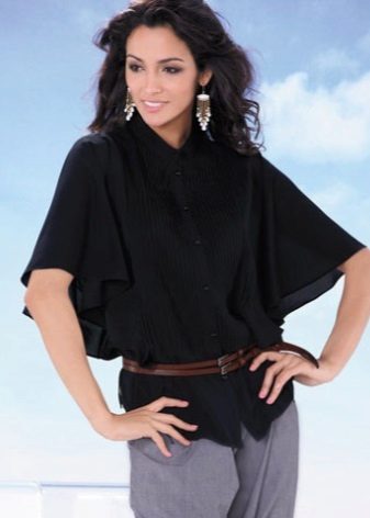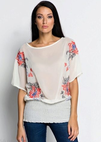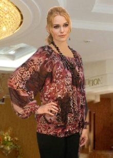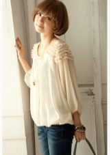 The very idea of a blouson suggests that it should be sewn from the most comfortable fabric with a light flowing texture. Among the most popular fabrics, as if created for a product of this type, one can first of all call fine knitwear, chiffon, artificial and natural silk.