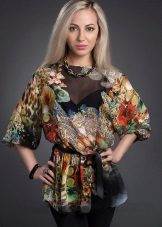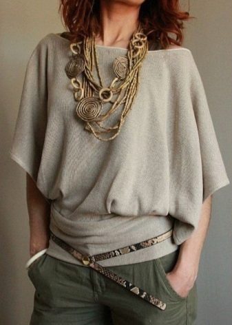 An elegant model of a blouson, usually made of thin knitted material, has a smooth flowing texture, bat sleeves and a tight waist belt. This model is very advantageous for its ability to combine with a huge number of things. A properly selected accessories will give a simple composition of completeness and sophistication.