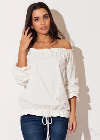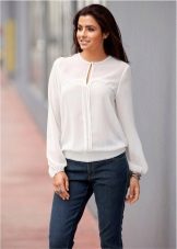 The classic model of a blouson is more like a light jacket, an essential element of which is the drawstring or elastic band on the bottom edge. Like a regular jacket, such a shirt can have a hood and a zipper. This model is sporting style.