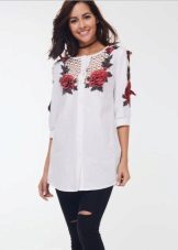 Long sleeves with a thin belt on the hips - a good part of the wardrobe, even if your proportions are not perfect. Such a shirt visually lengthens and pulls the figure. Sewn from fine cotton with the addition of viscose, it fits perfectly into a casual look, and when choosing a more elegant type of fabric (chiffon, satin, silk) it will look romantic.