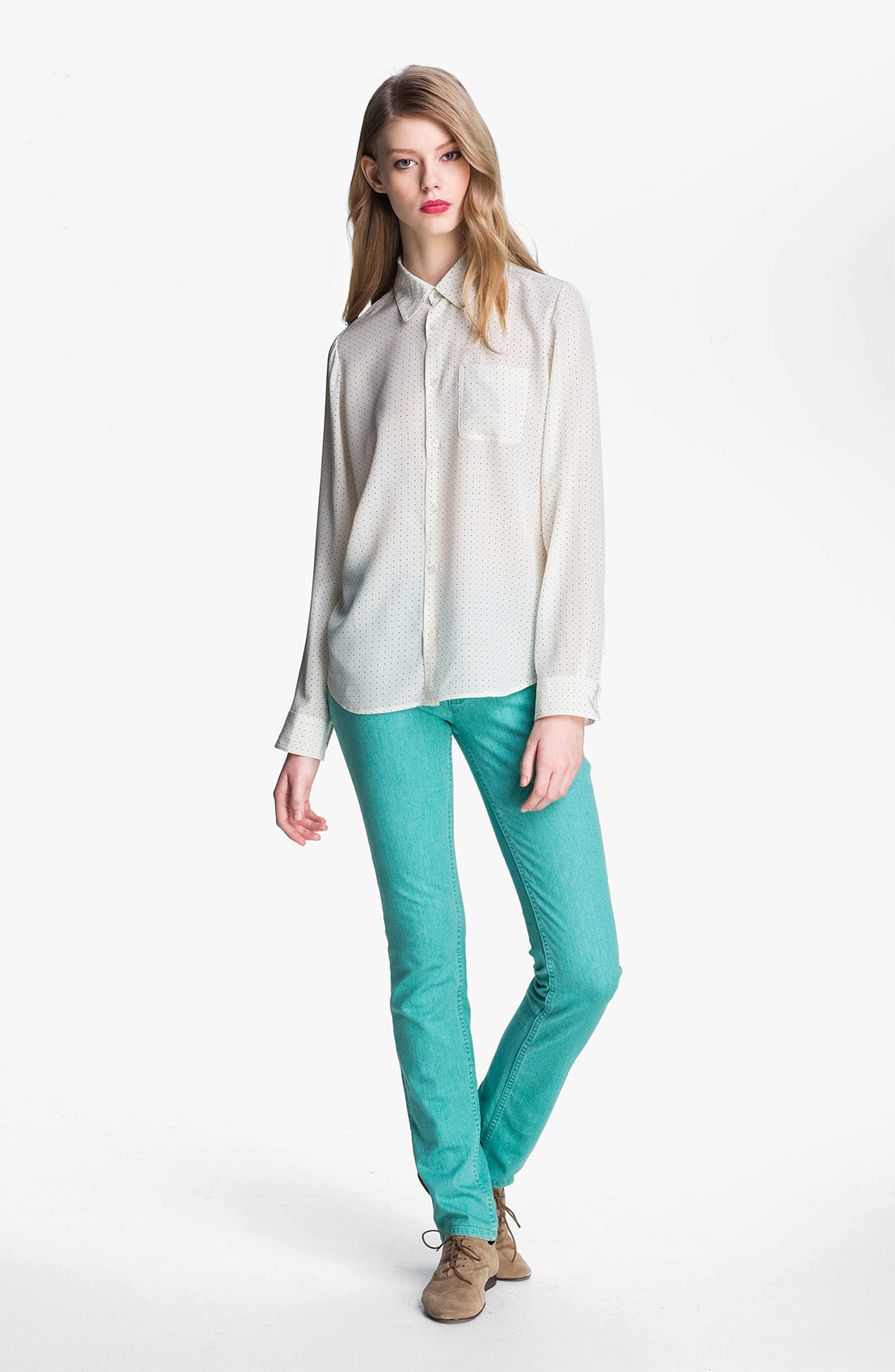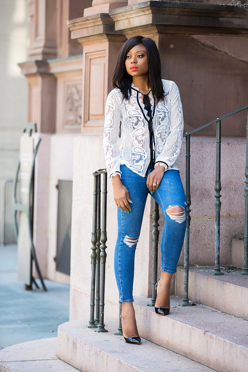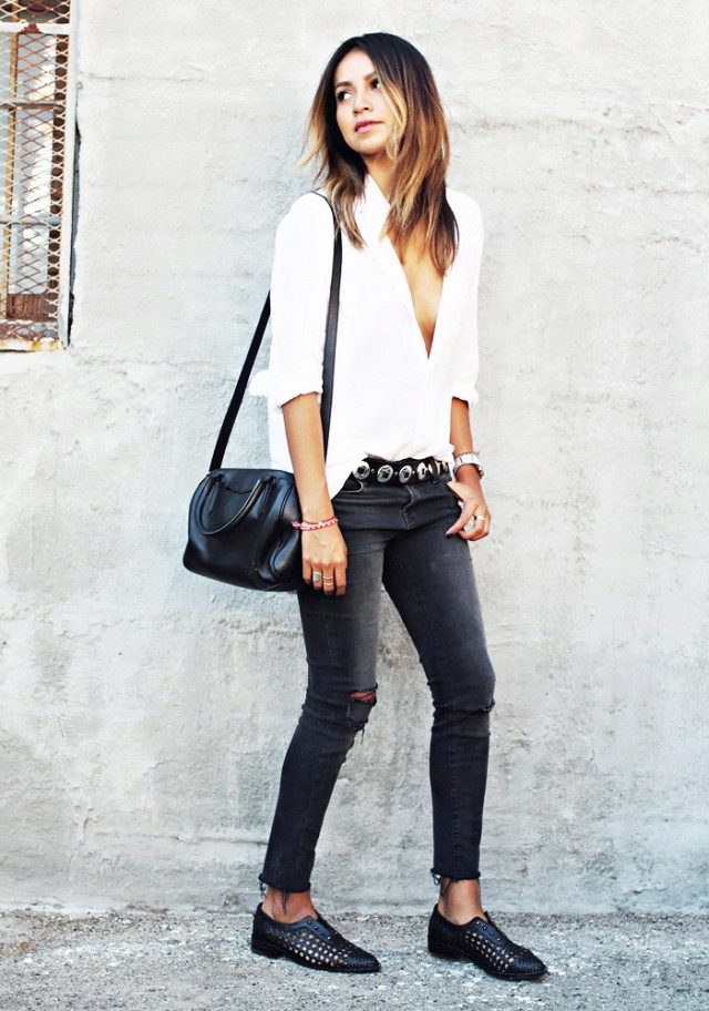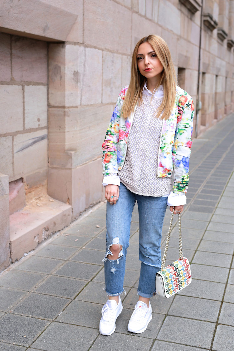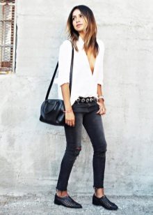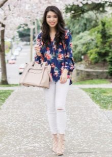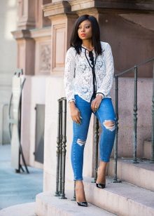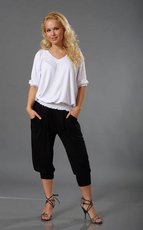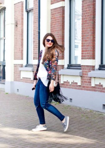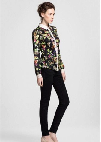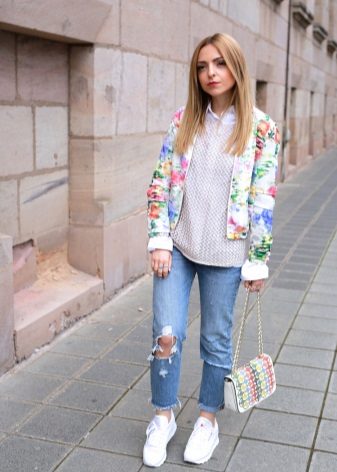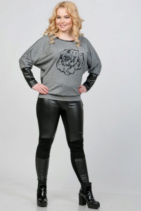 The flowing texture of knitted blouson will be perfectly complemented by skin-tight leggings or skinny jeans. For more casual combinations, the use of slightly flared bottom pants and skirts is permissible.