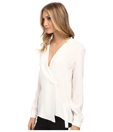 The volume and lightness of chiffon and silk top are balanced by a classic straight skirt or trousers.