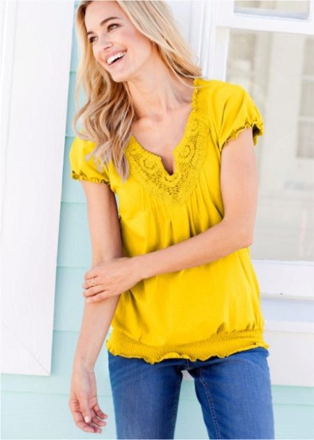 However, as there are no rules without exceptions, so among the blousons you can find very original copies of cotton, wool and even mohair. And even one summer wardrobe does not do without knitted knitted blousons. Interesting options are obtained when combining diverse materials and textures, as in the images in the photo.