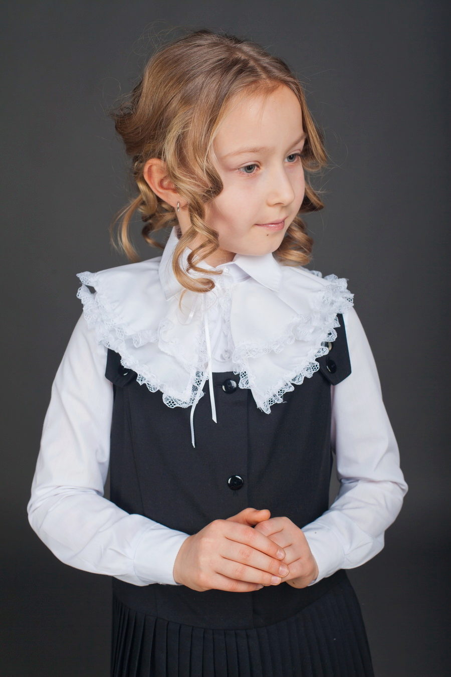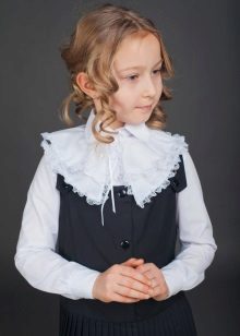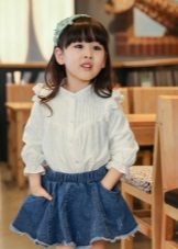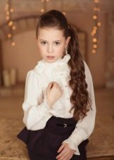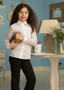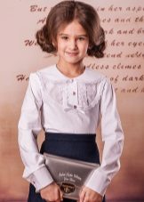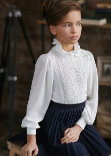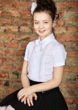 In the children's wardrobe there are many things with which you can combine a blouse. If we are talking about school everyday life, then it can be classic strict trousers, or the skirt - straight or flared. You can wear a uniform vest, a jacket over your blouse, and a warm sweater on cool days.