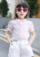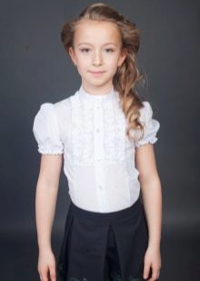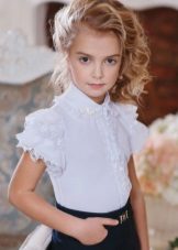 The most win-win coloring for a blouse is, of course, white. At school, snow-white blouses are worn with a dark bottom, provided by the form, and everyday life - with any comfortable clothing, whether it's jeans, shorts, bright pants, skirts and sundresses.