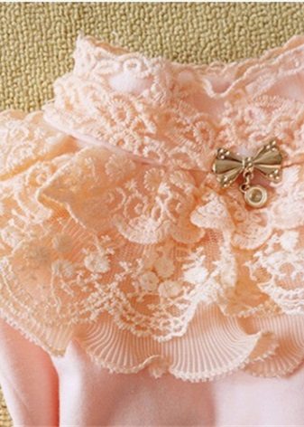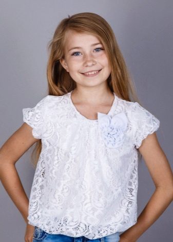- Guipure and lace look very impressive, but they are not always in place. For girls it is better to choose a blouse or cotton material with lace inserts.