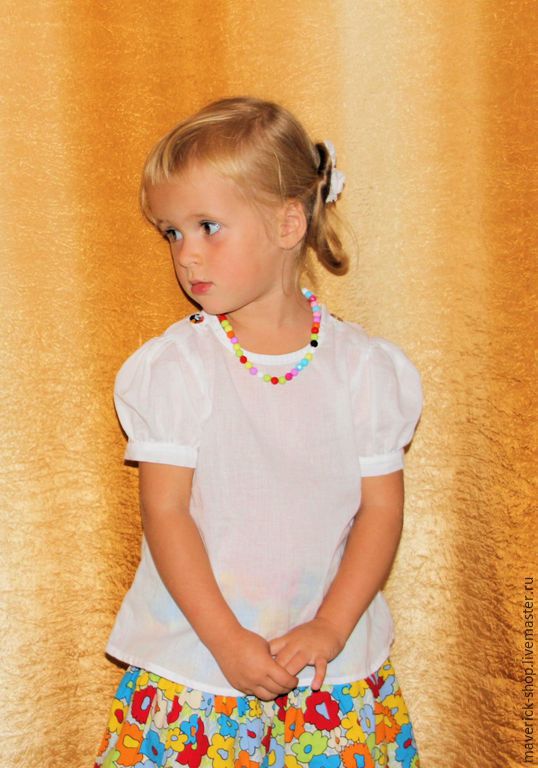 Your child will surely like blouses of other bright colors: blue, lemon, turquoise, scarlet, lilac, etc.