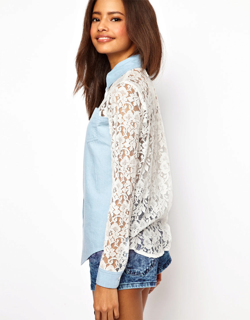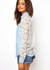 Blouses and lace and guipure, despite the really elegant appearance, can be combined with clothing in a variety of styles. The combination of "sophisticated lace blouse plus holey jeans or shorts" is no surprise now. By the way, with denim things such blouses always look great, as rough denim successfully contrasts with a thin lace fabric.