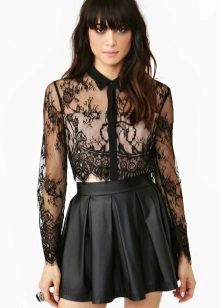 The blouse made of beige lace, despite the modest coloring, is very sexy, as it causes associations with the naked body.