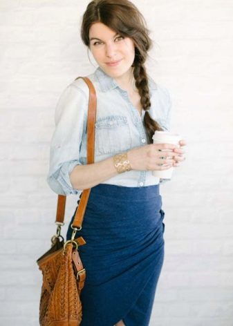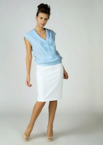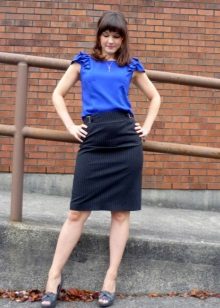 A blue blouse in combination with a skirt - the sun will become indispensable for cool summer days.