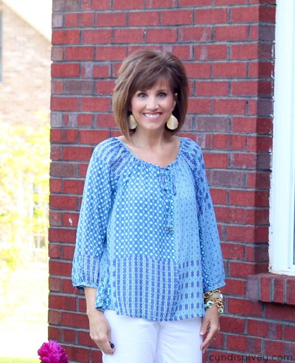 White and blue always looked spectacular. White skinny jeans, shorts, or a skirt and a white blouse will create a summer look. To complete the image, choose shoes of light or gold colors.