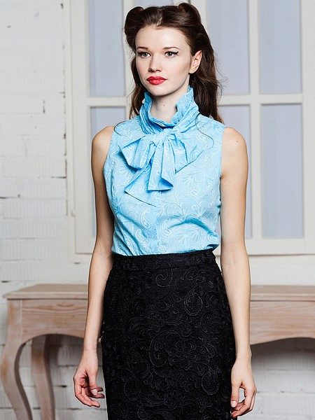 For owners of red hair and freckles one should wear blue blouses with care, because bright hair color can make absurdity when duet with a blue blouse. Ate you - red-haired beauty, and you still want to wear a blue blouse, then choose a light blue, not bright shade