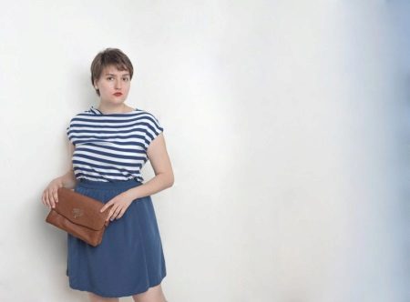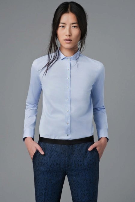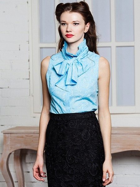 Blouses with a bow - it is always elegant and interesting. Choose a wide bow for girls with small breasts, and a small contrast bow for girls with big breasts. So you keep the proportions in your silhouette.