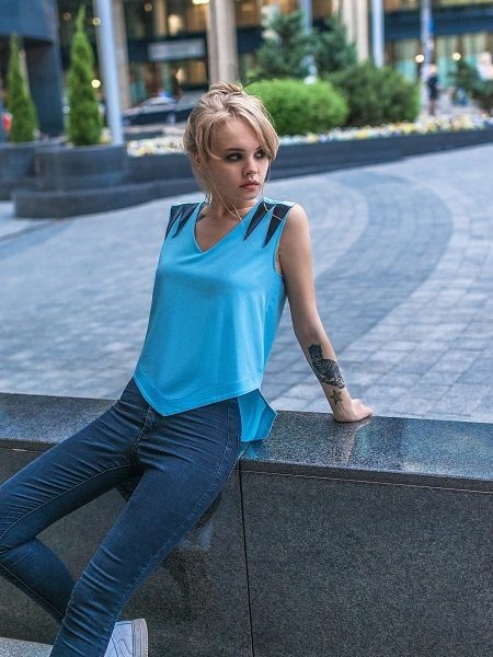Blue blouses will be an excellent choice for girls color type "summer" and "winter." Girls with fair skin blue will help to focus on the sophistication of the wardrobe.