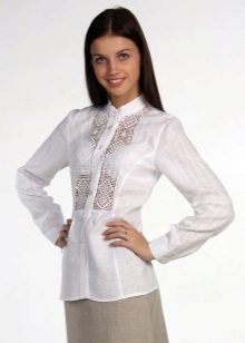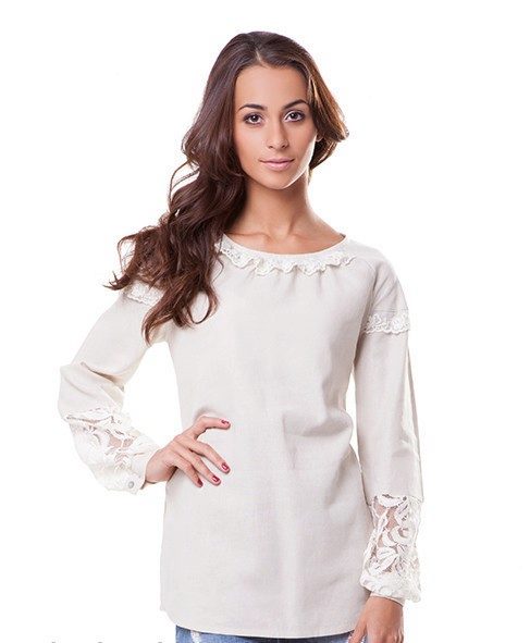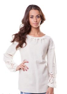 Lace models are very delicate and feminine. They perfectly complement the romantic image. Patterns with embroidery are bright and individual. In many cases, embroidery and lace are made by hand, which makes the blouse completely unique, but affects its value.