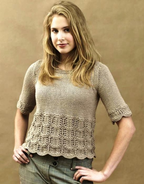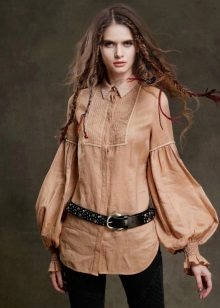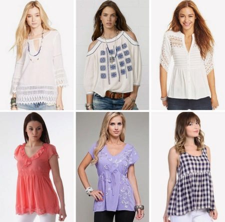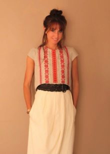 Romantic models with embroidery or lace look whole by themselves. They are usually supplemented with a simple monophonic skirt or wide trousers.