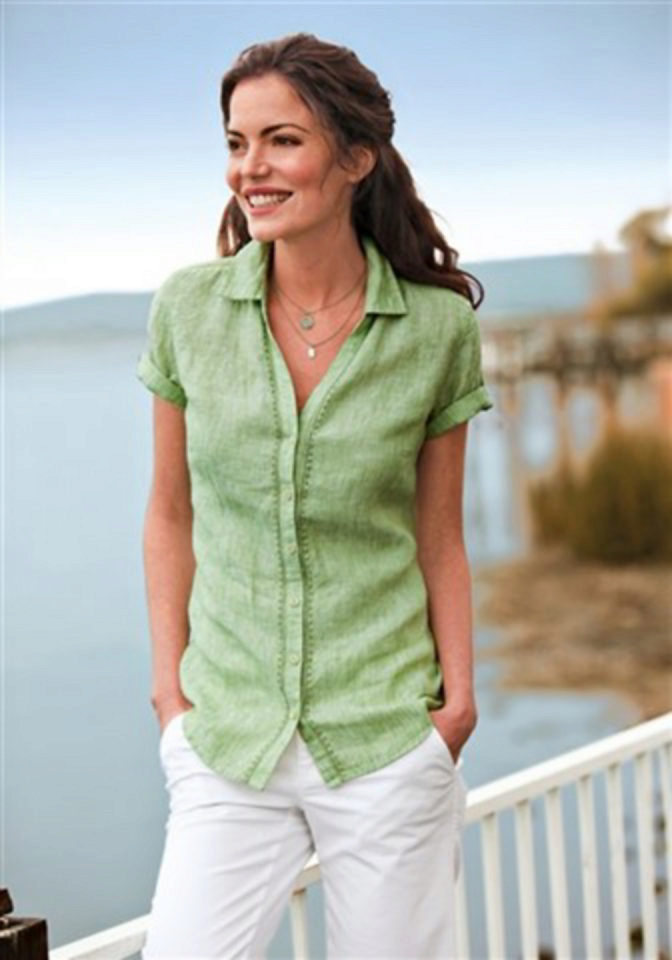 Flax shirts are worn with trousers, skirts or bermuda shorts.