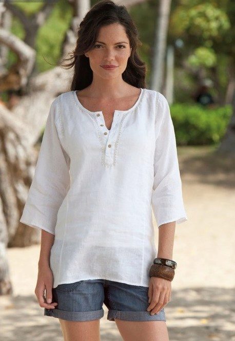 A loose linen tunic in the summer - what could be more comfortable? It can be supplemented with embroidery or accessories and worn with shorts or breeches.
