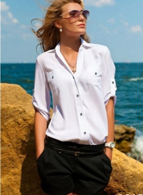 One of the most popular models. Perfect for going to work, and for everyday wear. It can be either with long or with short sleeves, with buttons or buttons.