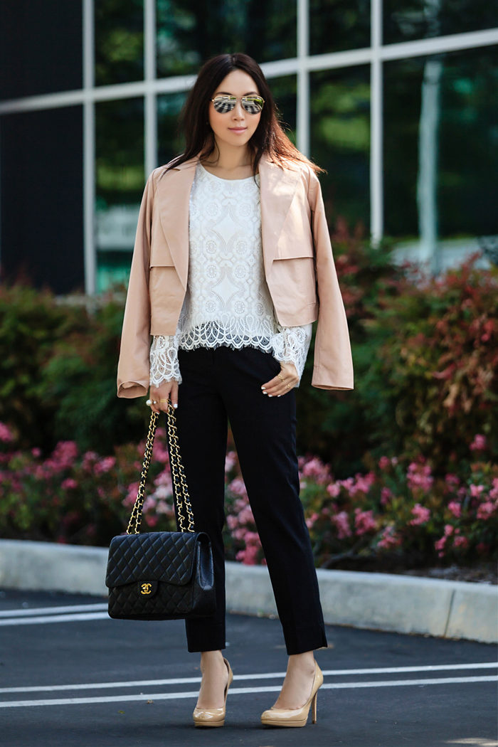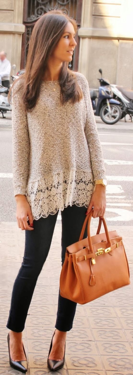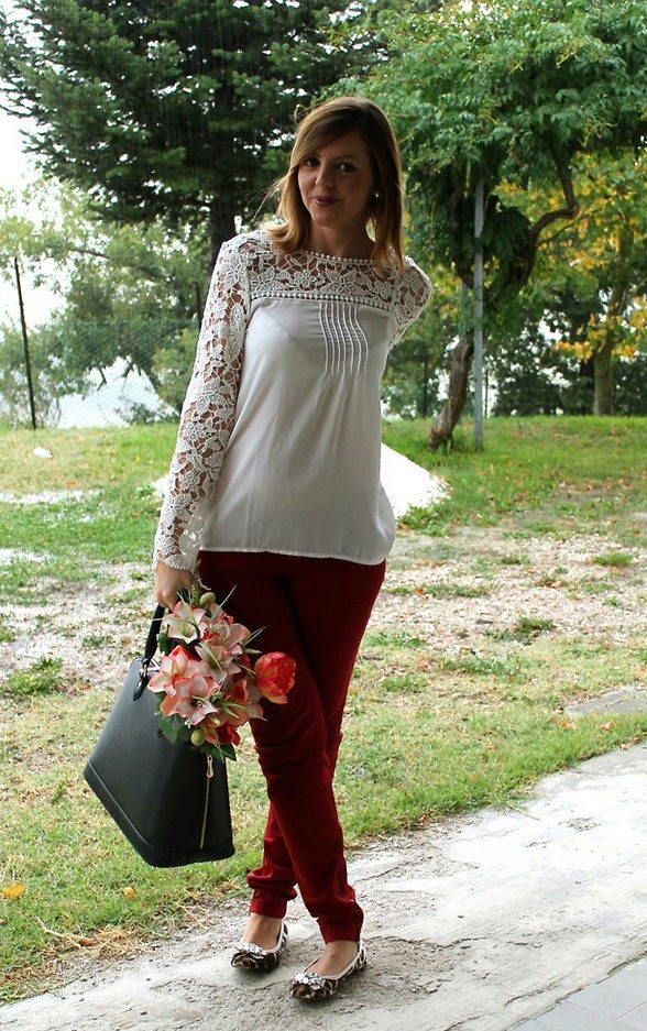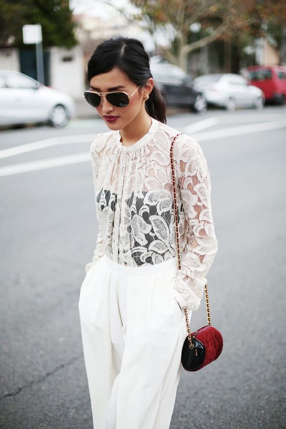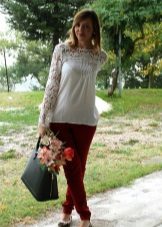 If you decide to wear a lace blouse in the office, be very careful in choosing the rest of the ensemble. Since lace sometimes looks defiant, you shouldn’t combine bright and eye-catching things that have a very open cut. The best option would be modest models that meet generally accepted standards of business style in clothing. Classic trousers and straight knee-length skirts are perfect for lace bow.