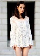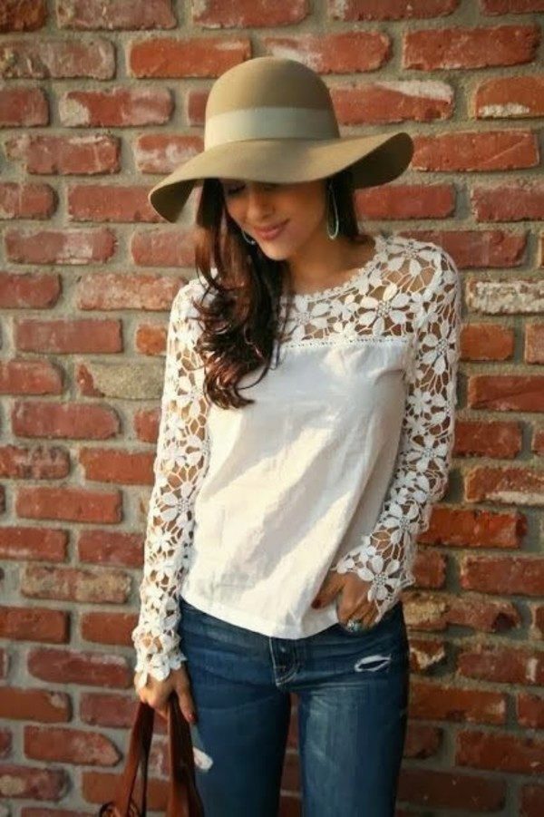 Straight top blouses with long sleeves can be made entirely of lace or have only individual lace details that can significantly change the look. Such models give their owner a modest and restrained look, through which hidden sexuality and seduction as if by chance peeps.