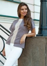 With the help of correctly located inserts on the blouse, you can slightly visually correct the shape. Placed vertically from the bottom to the shoulder line, the thin inserts draw out the silhouette, making it slimmer.