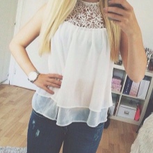 The thin strap, which is present in some styles of lace blouses, emphasizes the waist very favorably. But, so that such hips do not seem much wider than they really are, the blouse should be at least 15 centimeters longer than the waistline.