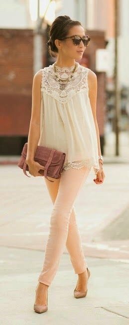 - From shoes with a lace blouse, shoes or high-heeled sandals look best;