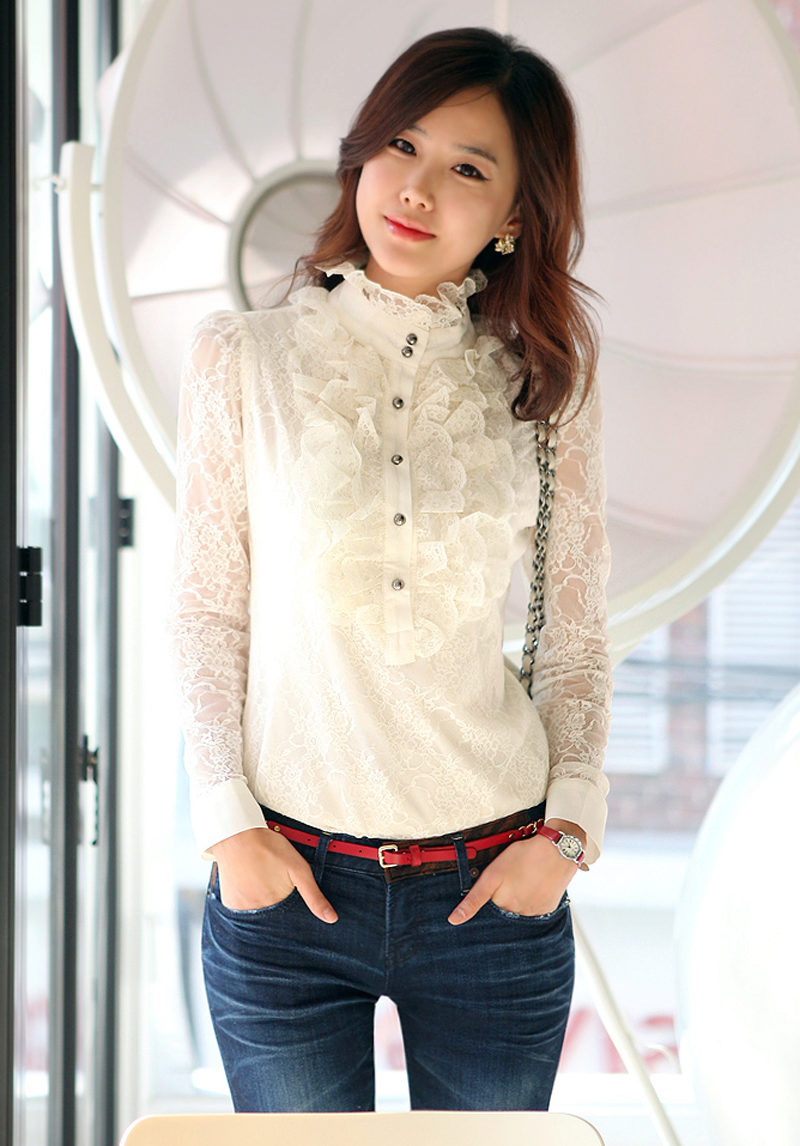 Lace Blouses with Collar would be an excellent option to visit the office. In white color, they look more than strictly, even despite its transparency. Such models should be chosen with a lining or with a combination of fabric that will hide the chest area, otherwise you risk catching yourself with the disgruntled looks of the boss and just do not fit into the framework of a business dress code.