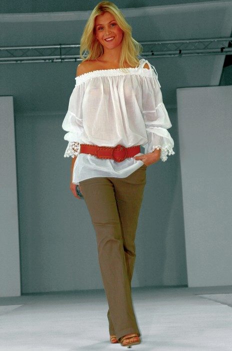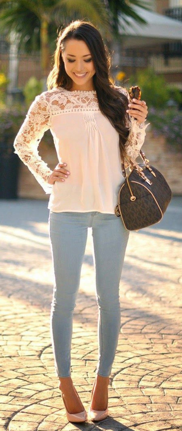 - A blouse of a free cut suggests a skinny bottom — for example, skinny jeans or a pencil skirt;